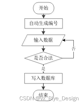 用户成功登入系统后就能够实现增加数据的操作,增加数据的编号是特定的,系统生成,用户不能随意填写,除了编号以外,其他增加信息用户自己填写,填写后的信息经过系统验证,验证合法通过就显示增加数据成功了,相反的话,就没有增加成功,图2-1显示的就是在增加数据时的流程。