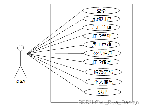 企业考勤管理系统中管理员角色用例图如图2.2所示: