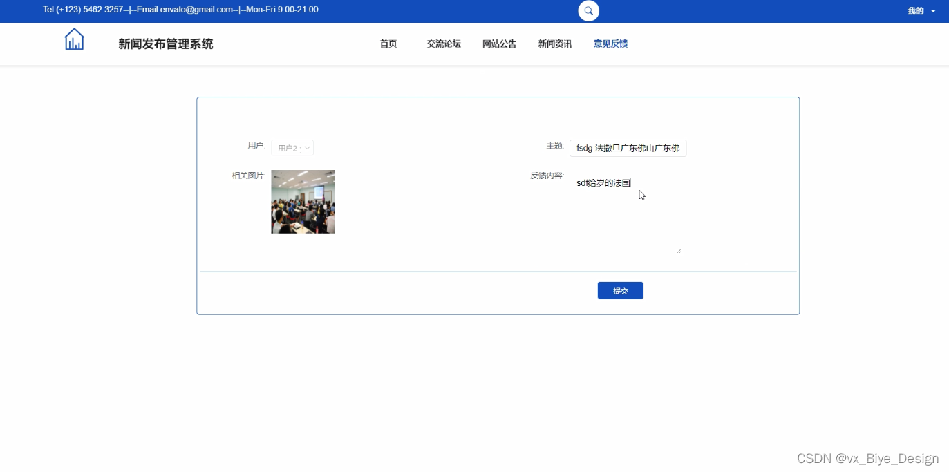 浏览意见反馈信息:选中某个新闻可查看其用户的意见反馈。