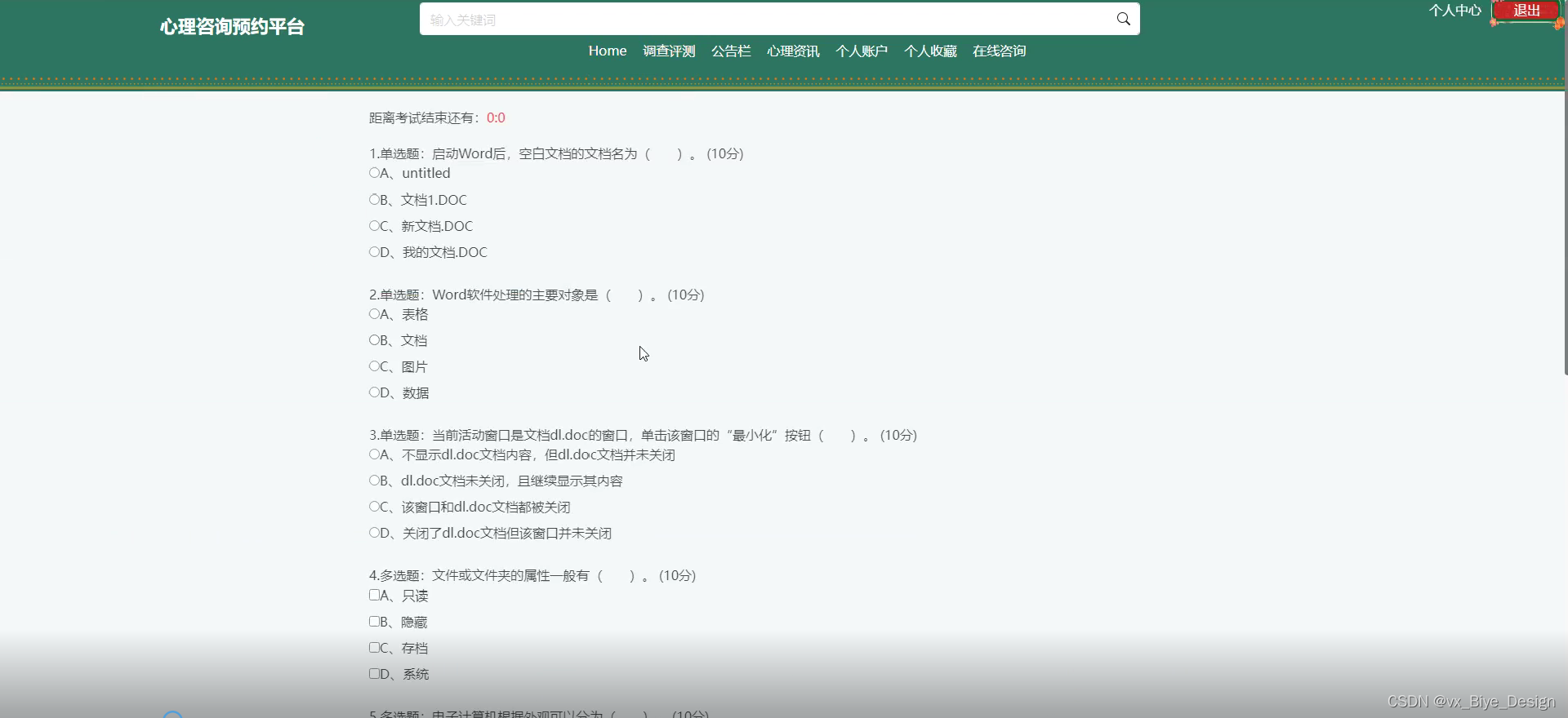 随着计算机互联网技术的迅猛发展,各行各业都已经实现采用计算机相关技术对日益放大的数据进行管理。该课题是心理咨询预约平台为核心展开的,主要是为了实现线上心理测评以及线上心理问题咨询的需求。