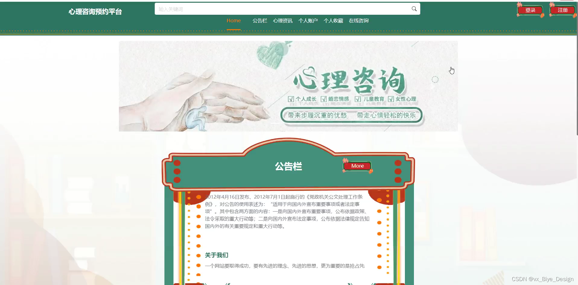 Key words: Psychological counseling appointment platform; Thinkphp framework; MySQL database