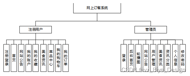 网上订餐系统总体分为前台用户模块和后台管理员模块。