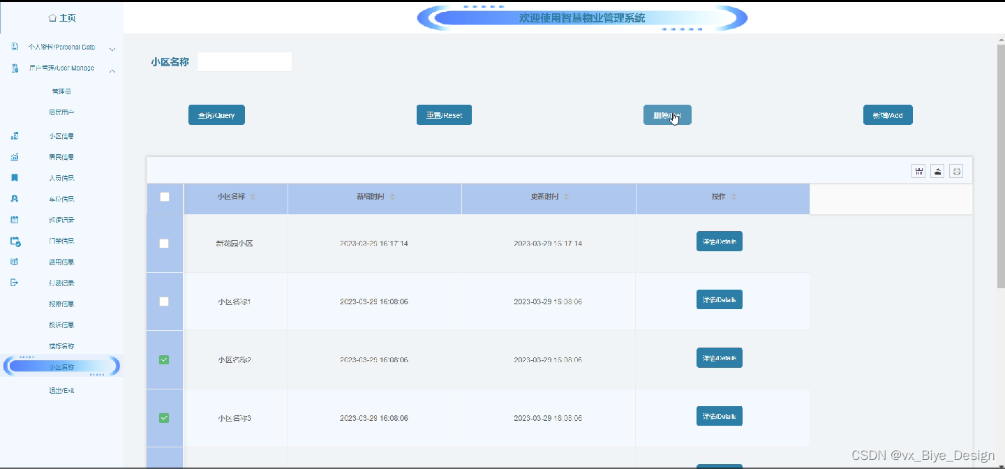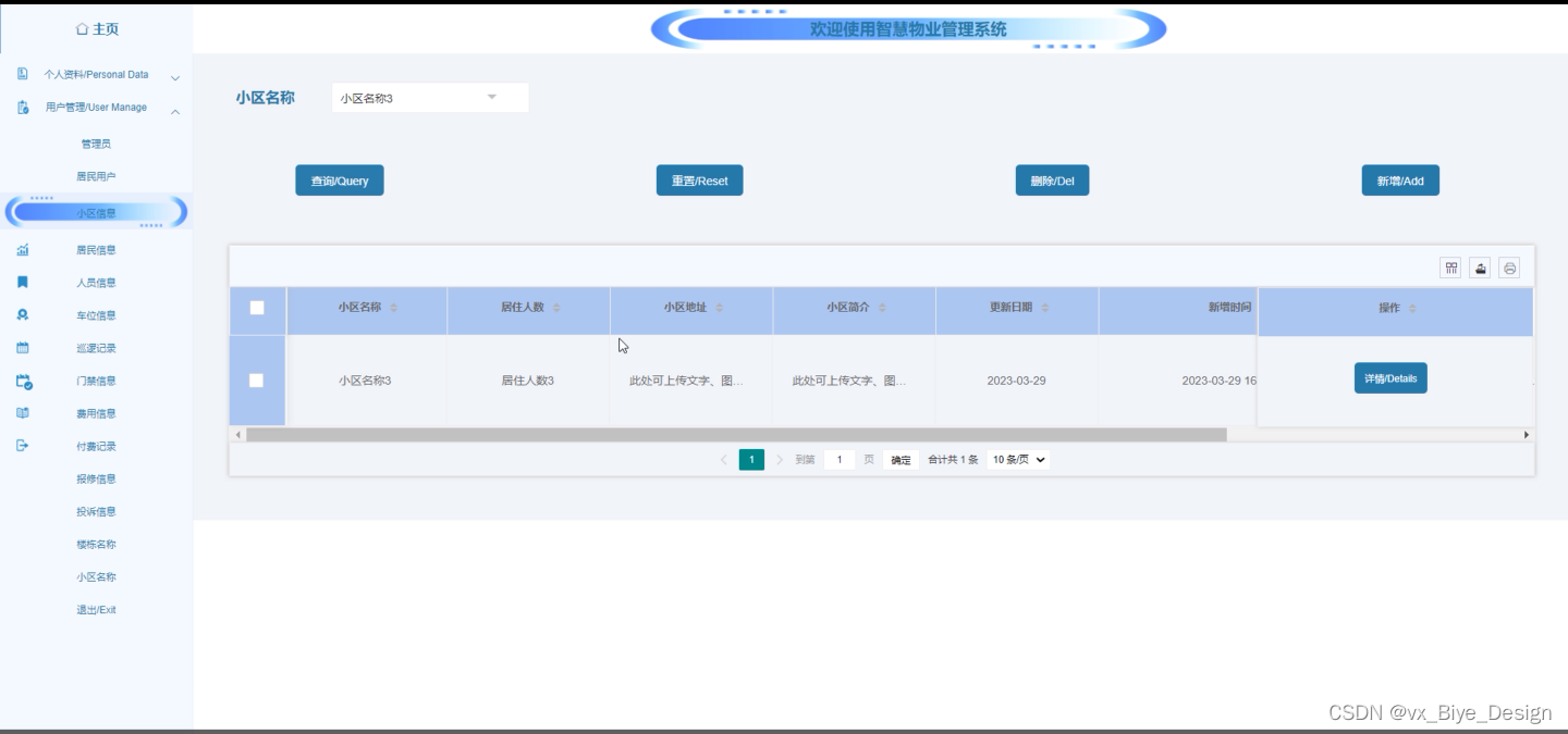 小区名称,管理员可在此页面添加、修改、添加或删除小区名称等操作,如图5-7 5-7-1所示。