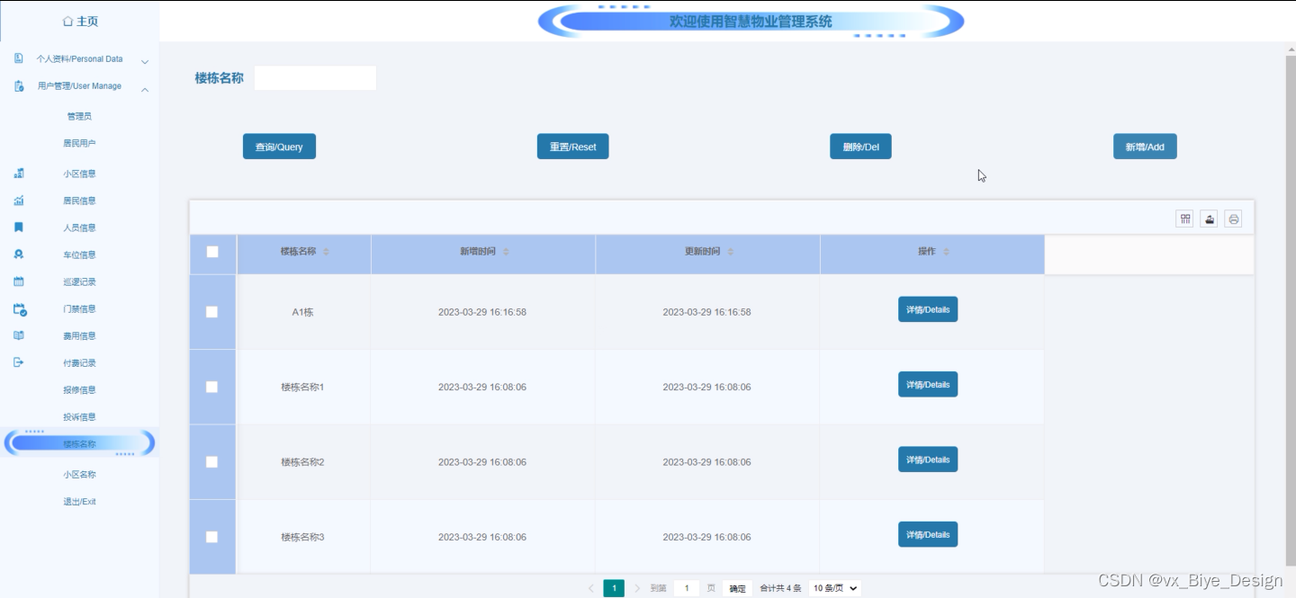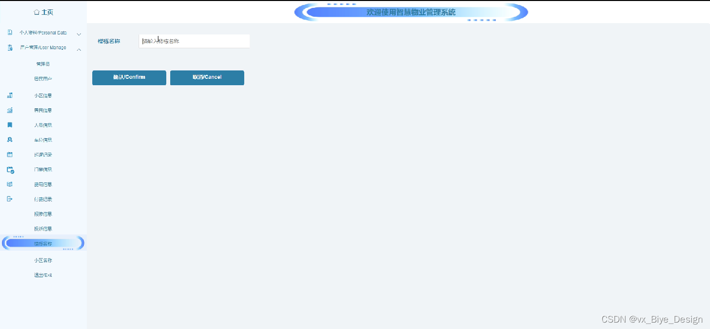 楼栋名称,管理员可在此页面添加、修改、添加或删除楼栋名称等操作,如图5-6 5-6-1所示。