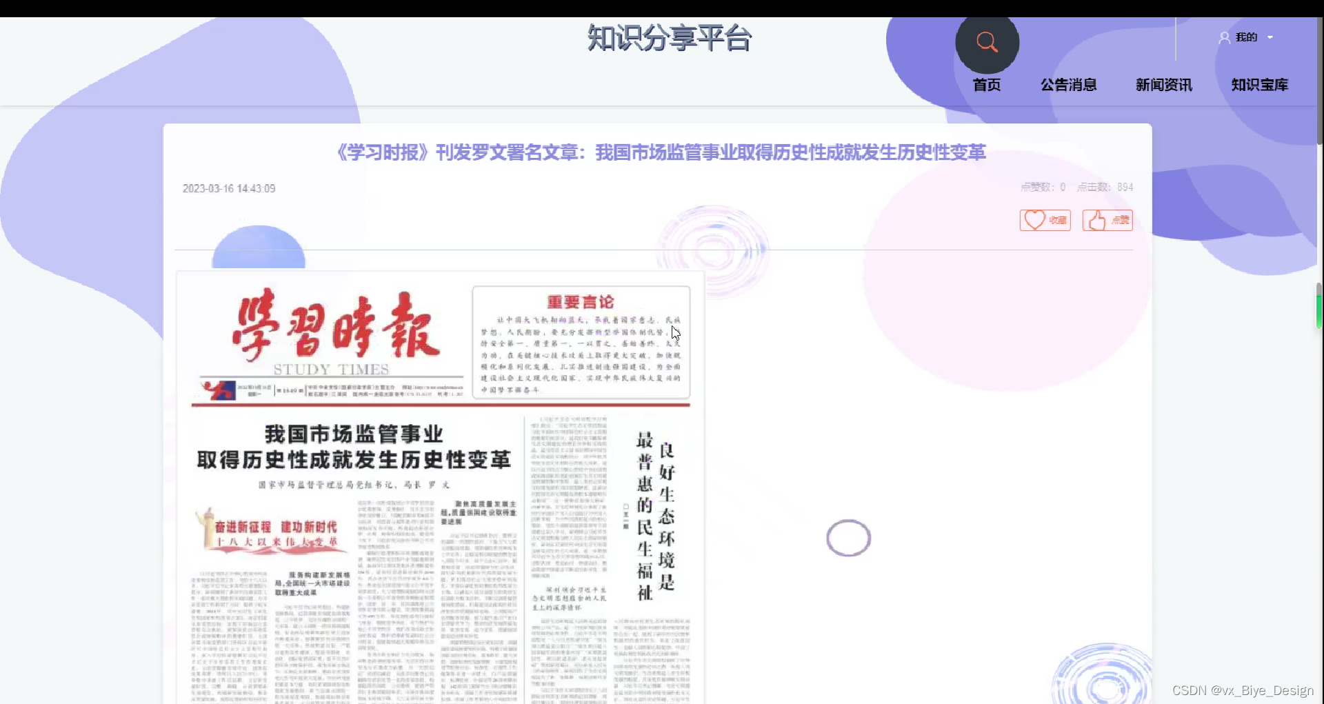 近年来,国家对知识共享非常重视,知识共享建设取得了长足的发展,全国各大、中、小学校,各级教育机构以及商业机构都先后建立了各种基于网络的教育资源数据库,极推动着知识共享的发展。而目前我们在知识共享方面开展工作的时间还不长,部分学校和部门在开展知识共享资源建设方面还刚刚起步,在知识共享建设上还缺乏统一技术规和模型。国内高校信息资源平台建设不完整,操作过于复杂,不仅信息内容过于单一且信息提供过于封闭,只有小部分学生可以接触到所需知识信息。而如今大数据时代背景下,网络平台搜索已成为高校学生搜寻资料的主要途径,而其中存在的耗时长,相关性弱等问题也日益凸显。此外,学生对学习笔记往年试卷等学习资料有着大量的需求,而传统的纸质资料及搜寻模式很大程度上限制了资料广泛共享的可能性。因此,我认为有必要建立一个知识分享平台,实现知识信息共享。