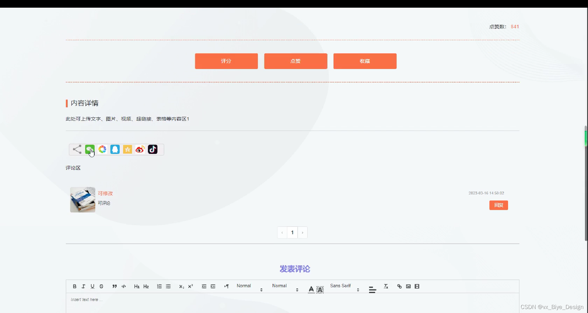 用户在可通过名称搜索,排序,类型筛选等方式查询知识宝库,可以进行收藏,点赞,评论,分享,评分等操作。如下图所示。