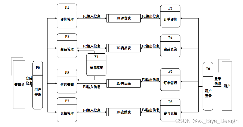 对系统的数据流进行分析,系统的使用者分为二类,一般用户,管理员。系统主要对界面信息传送,登录信息的验证,注册信息的接收,用户各种操作的响应做处理。