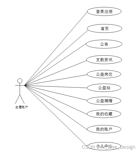 图2-1就是志愿用户角色的用例展示。