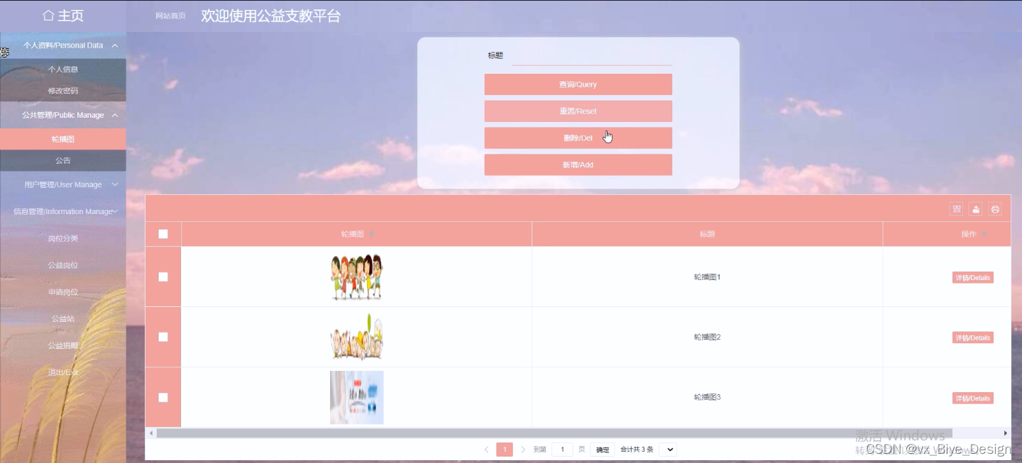 公共管理模块是对系统公告和轮播图的设置,只有管理员权限才能进行更新维护。界面如下图4-10所示。