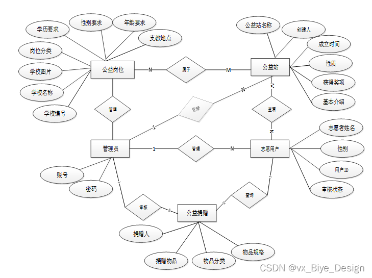 下面是整个公益支教平台中主要的数据库表总E-R实体关系图。