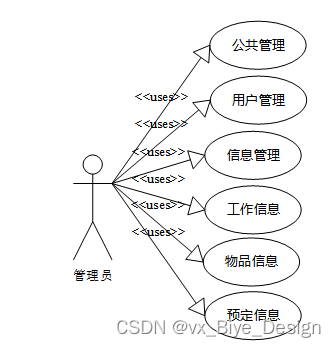 工作人员和物品信息存在申请关系,关系为一对多,根据物品编号来将物品数据传入到预定数据中,操作人为工作人员,然后生成预定列表,工作人员查看个人历史领取列表,可以进行数据销毁。