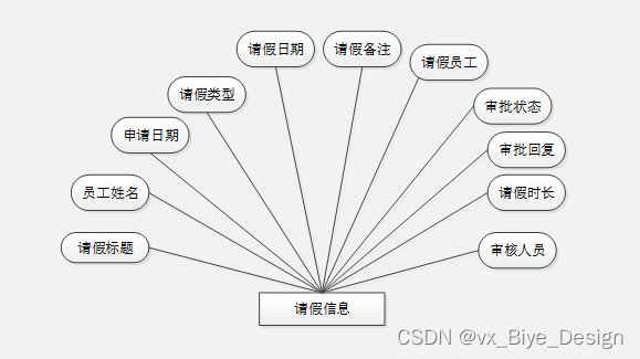 请假信息管理,在请假信息管理页面可以通过查看请假标题、请假类型、请假员工、员工姓名、‘请假日期、请假时长、申请日期、请假备注等内容进行详情、修改、删除如图5-14所示