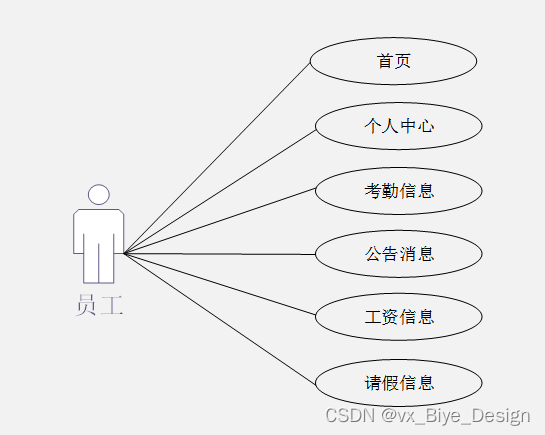 对于员工所使用的功能模块的操作主要是首页、模块管理(考勤信息、公告消息、工资信息、请假信息)等功能。