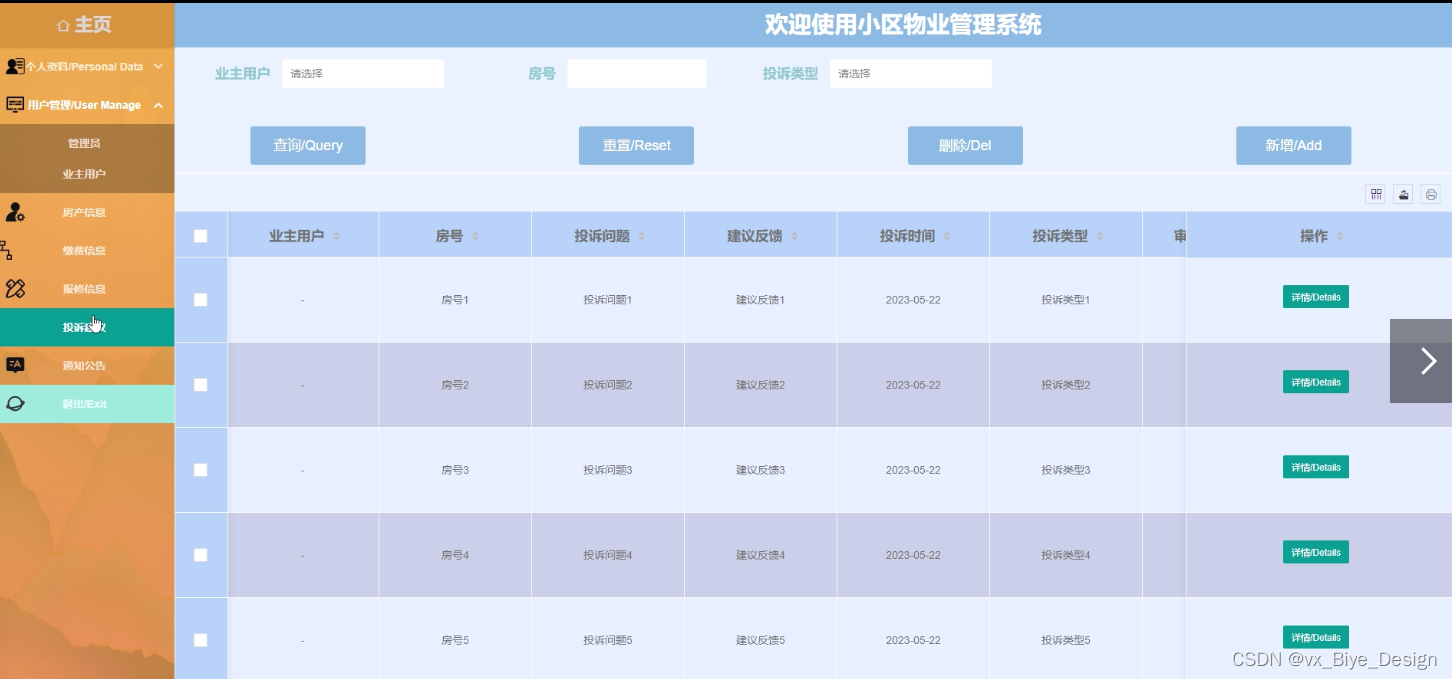 因此需要实现对物业管理的电子化,提高物业管理效能和使用效能。随着计算机应用技术的高速发展,各种基于WEB的系统收到了企业以及用户的欢迎,基于这个背景下设计一款小区物业管理系统,利用WEB网页管理的便利性的优点,提高小区物业管理系统的工作效率,使业主以及管理人员能够享受更加便捷高效的服务。