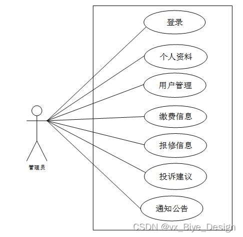 小区物业管理系统中管理员角色用例图如图2.2所示: