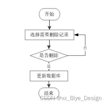 用户可选择要删除的信息进行信息删除操作,在删除信息时系统提示是否确定删除信息,是则删除信息成功,系统数据库将信息进行删除。删除信息流程图如图2-4所示。