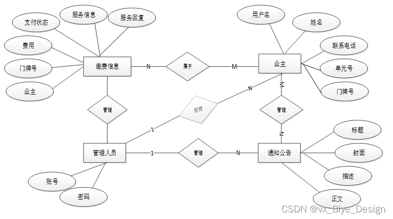 下面是整个小区物业管理系统中主要的数据库表总E-R实体关系图。