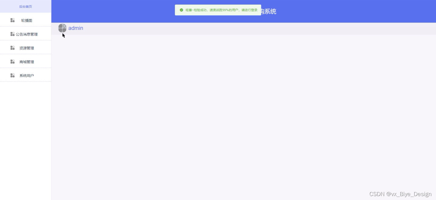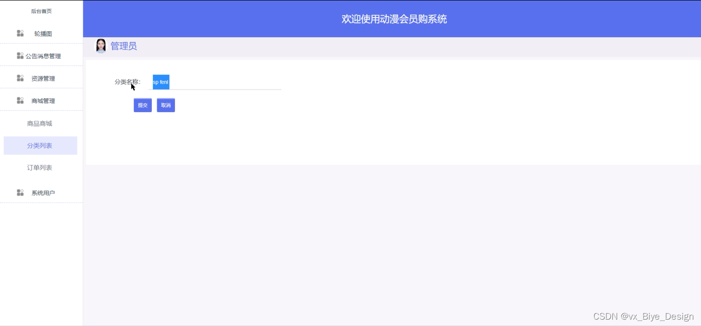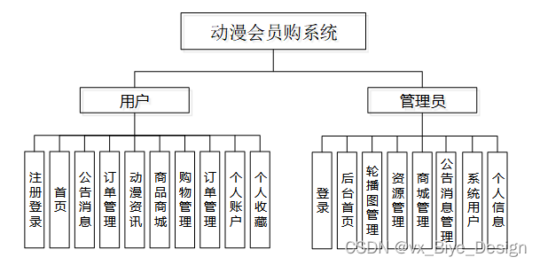 (1)功能要求:后台首页、轮播图管理、公告消息管理、商城管理(商品商城、分类列表、订单列表)、系统用户(管理员、普通用户)资源管理(动漫资讯、资讯分类)个人信息等功能模块。