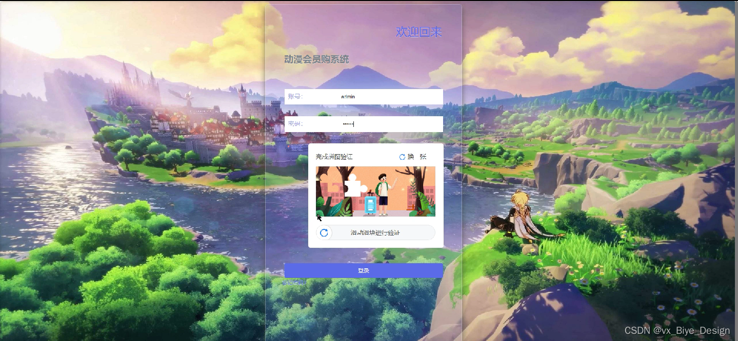 管理员登录动漫会员购系统,在登录页面输入用户名、密码、滑动图片验证进行登录,如图5-1所示。