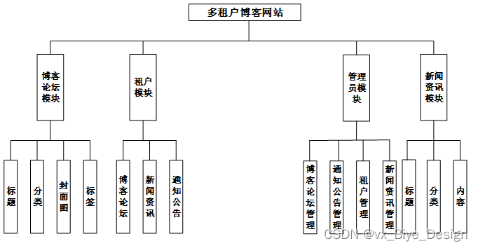 多租户博客网站总体分为前台用户模块和后台管理员模块。