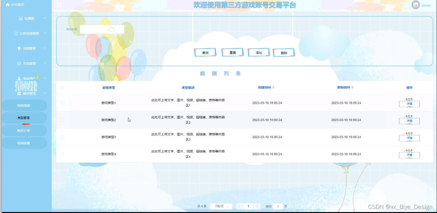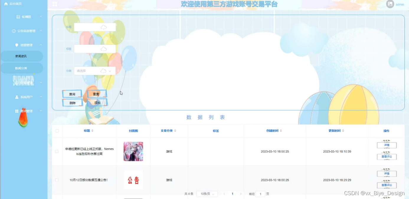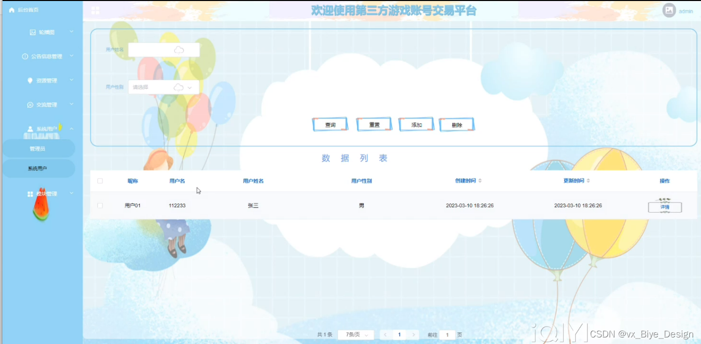 The use of this system can realize the informatization of the management of the third-party game account trading platform, facilitate the administrator to conduct more convenient and efficient management, and improve the management efficiency of the third-party game account trading platform.