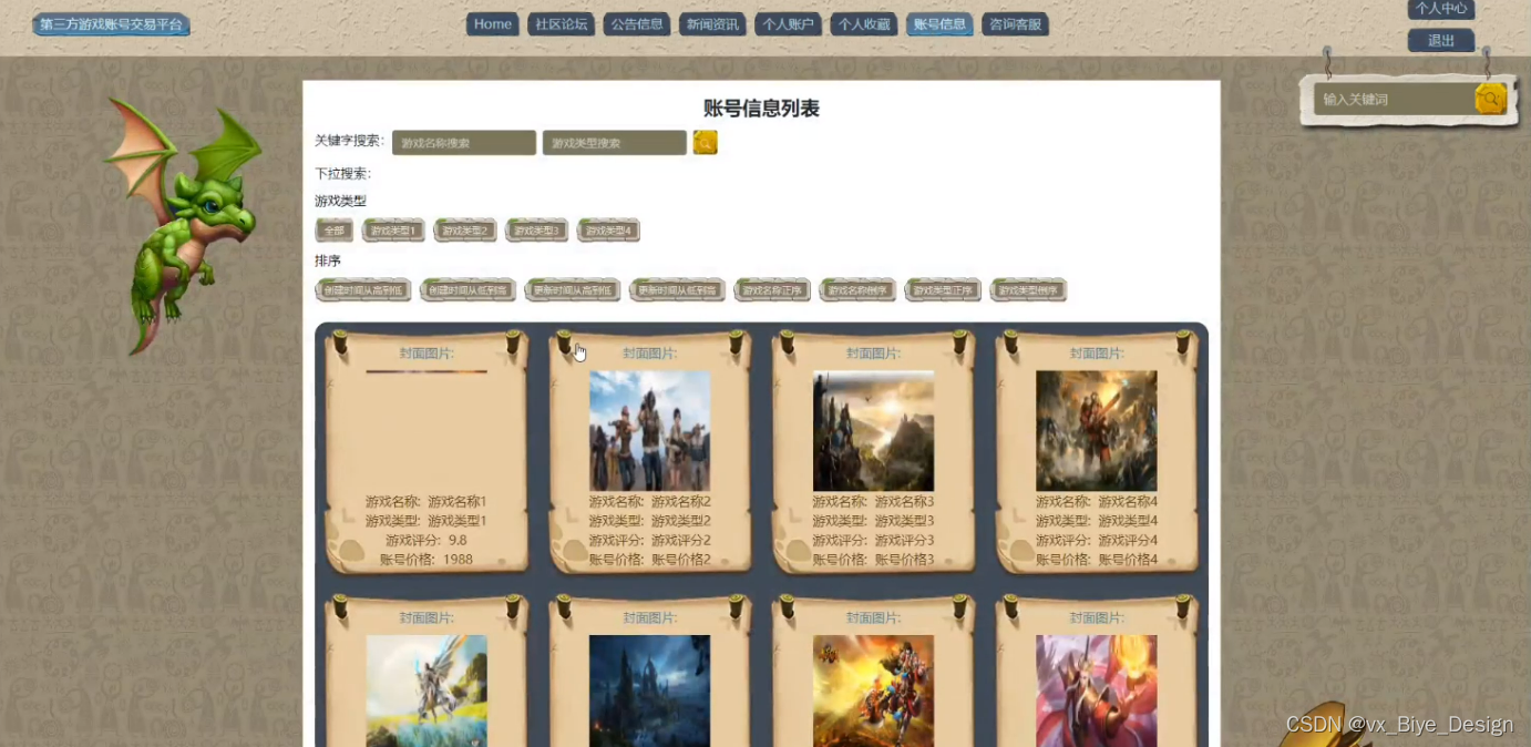 关键词:第三方游戏账号交易平台;springboot框架;MYSQL数据库;