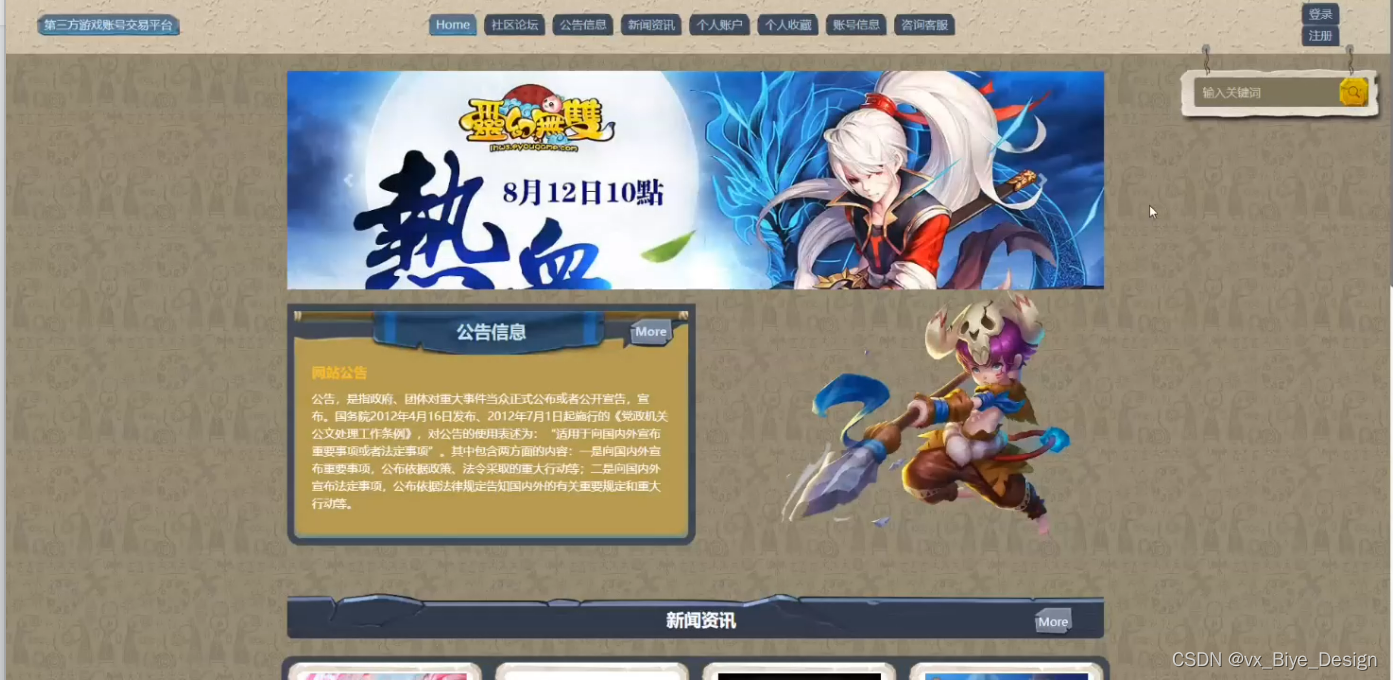 随着计算机的不断发展,已经融入到我们生活工作的每一个领域中,网络带给我们的生活和工作都有很多的便利,因此,希望可以通过该系统的开发也能使第三方游戏账号交易平台管理实现信息化管理,减轻管理员的工作负担,提高销售的效率。