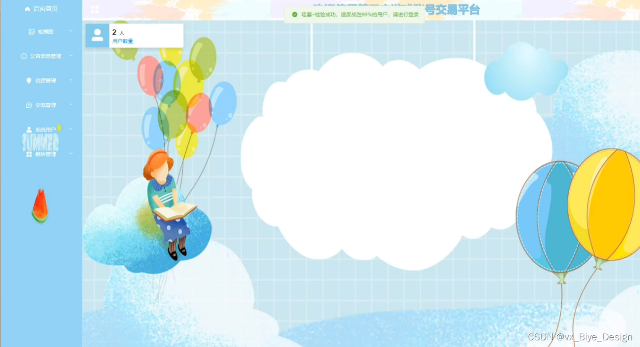用户注册成功,在系统登录界面输入注册账号以及密码进入系统。如图5-3所示。