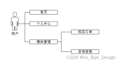 (2)用户:后台首页、个人中心、模块管理(购买订单、咨询客服)等功能,用户用例图如图3-2所示。