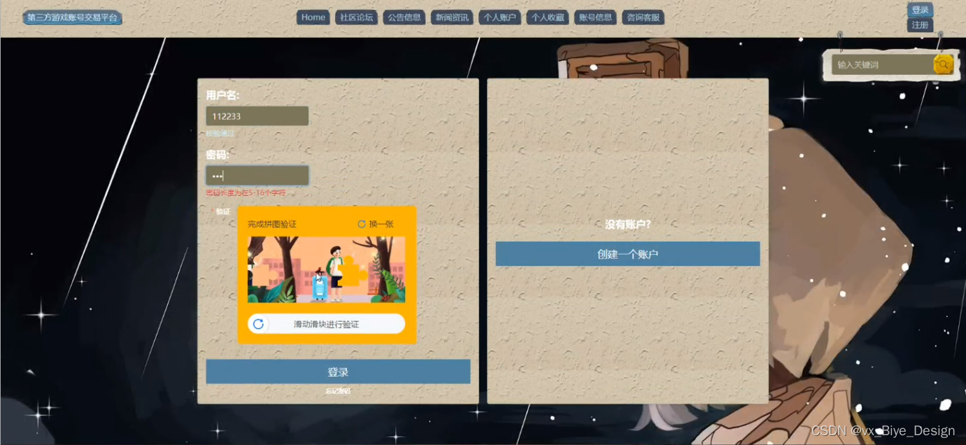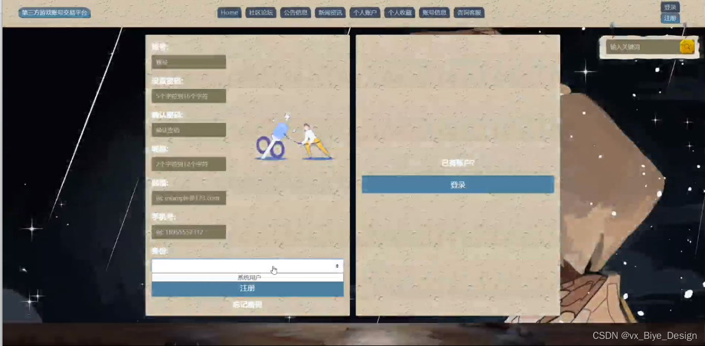 (6)稳定性:开发的第三方游戏账号交易平台要求运行稳定,运行过程中无界面不清楚、字体模糊等现象。