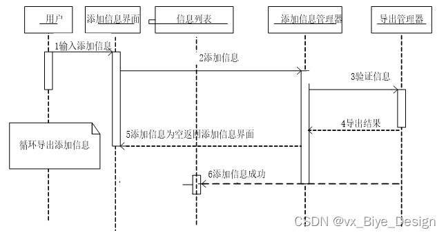 管理员以及用户登录后均可进行添加信息操作,添加信息模块顺序图如图4-4所示。