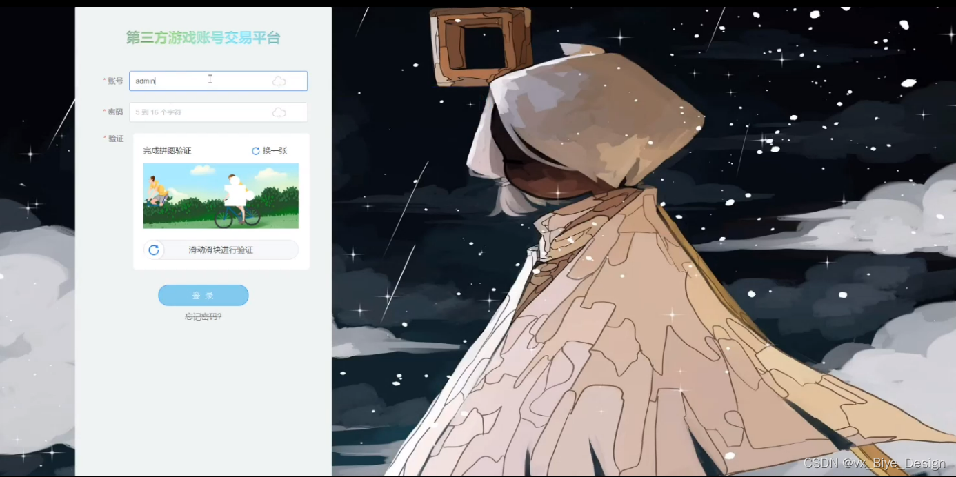 管理员登录,通过填写用户名、密码、验证等信息,输入完成后选择登录即可进入第三方游戏账号交易平台 ,如图5-6所示。