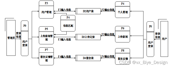 对系统的数据流进行分析,系统的使用者分为二类,一般用户,管理员。系统主要对界面信息传送,登录信息的验证,注册信息的接收,用户各种操作的响应做处理。