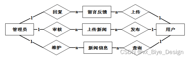 从前面可以分析到数据库中最重要的是新闻信息,上传新闻,留言反馈,用户信息,管理员信息。分析可以得到如下数据描述: