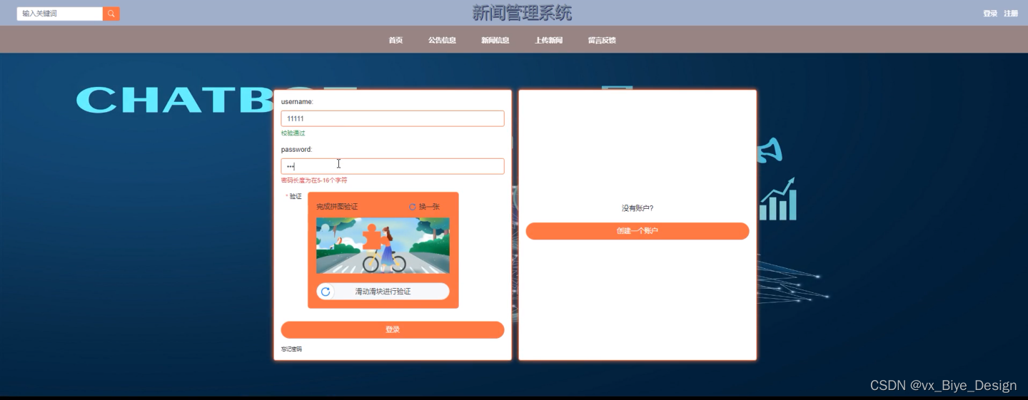 | 点击搜索新闻信息,输入不存在的新闻信息名 | 不显示新闻信息 | 与预期结果一致 |