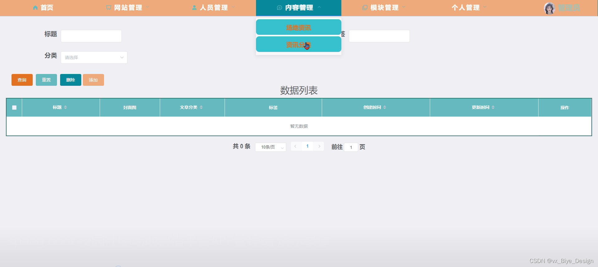 场地信息管理,管理员可以对场地信息进行修改或删除操作,如图4-7所示。