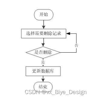 用户可选择要删除的信息进行信息删除操作,在删除信息时系统提示是否确定删除信息,是则删除信息成功,系统数据库将信息进行删除。删除信息流程图如图2-4所示。