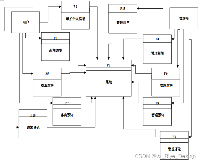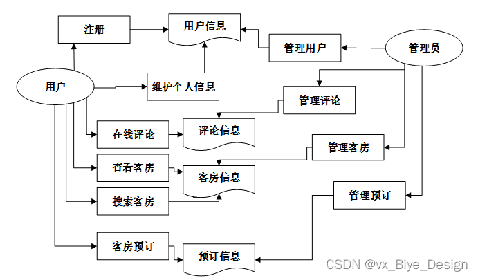 经过对系统功能的分析,调查,研究,总结出酒店管理系统主要实现的是对¥留言信息、用户信息等管理功能。这样,可以对该系统绘制业务流程图。