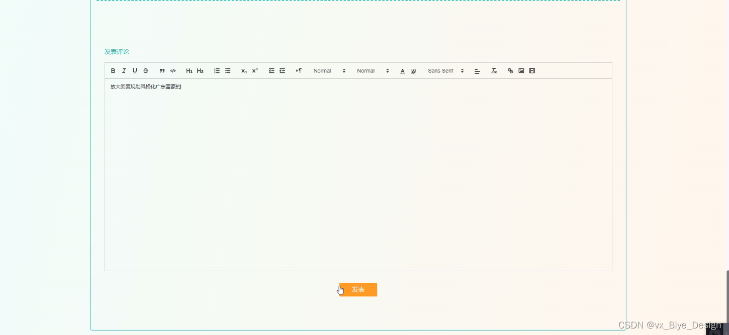 前端部分:前端框架采用了比较流行的渐进式JavaScript框架Vue.js。使用Vue-Router和Vuex实现动态路由和全局状态管理,Ajax实现前后端通信,Element UI组件库使页面快速成型,项目前端通过栅格布局实现响应式,可适应PC端、平板端、手机端等不同屏幕大小尺寸的完美布局展示。