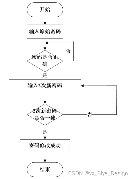 | 修改密码 | 用户打开修改密码界面 | 输入正确初始密码和2次不相同的新密码 | 密码修改失败 | 密码修改失败 | 正常 |