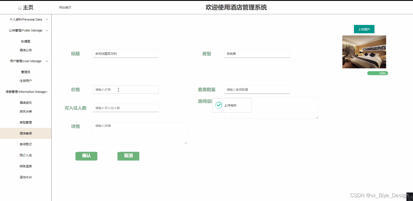 | 客房预订 | 用户已登录,打开客房预订界面 | 用户未输入客房标题和内容 | 客房预订失败 | 客房预订失败 | 正常 |