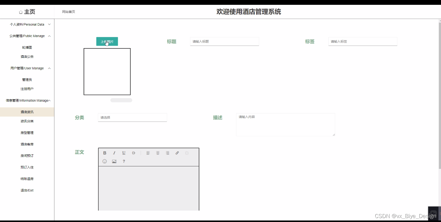 | 客房信息添加 | 用户已登录,打开客房添加界面 | 输入客房标题、内容等信息 | 客房添加成功 | 客房添加成功,新客房成功显示 | 正常 |