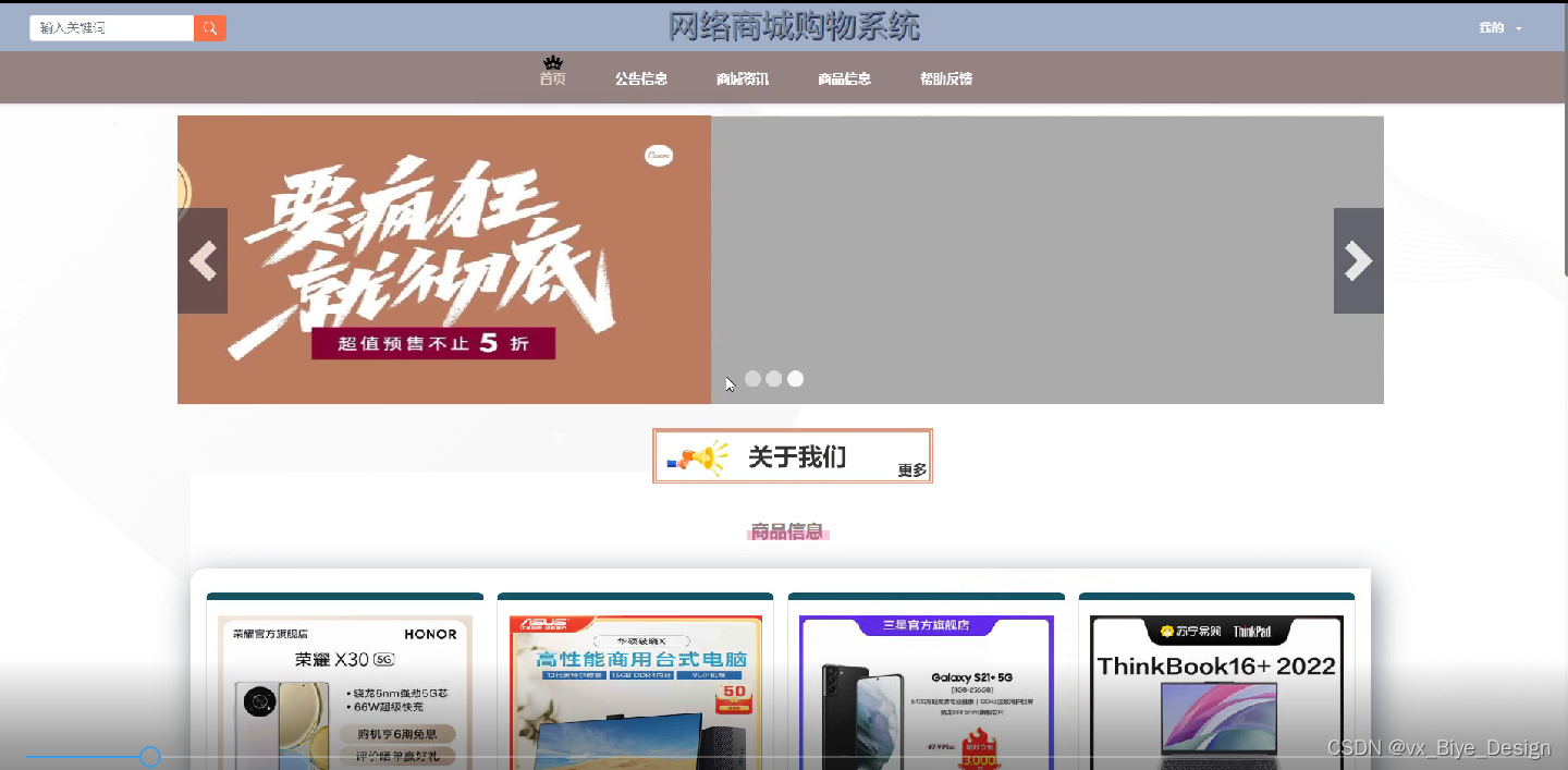 本系统从网络商城购物系统的实际需要出发,以提高工作效率、节约时间为目标,设计开发了一个基于SpringBoot的网络商城购物系统,网络商城购物系统围绕系部管理员、会员用户两种角色,主要功能包括首页、公共管理(公告信息,轮播图)信息管理(商城资讯、资讯分类),订单信息、帮助反馈、运营计划、订单列表、分类列表、商品信息、个人资料等功能模块。论文首先介绍了本系统的相关技术,并进行了需求分析,分别给出了系统Web服务器端和移动终端的概要设计、数据库设计和详细设计,实现完成的系统经测试上线,运行效果良好。