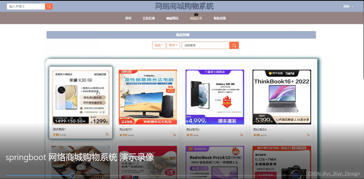 商品信息,系统用户在此页面搜索查看商城产品,搜索通过关键字,和条件筛选,如图5-10所示。
