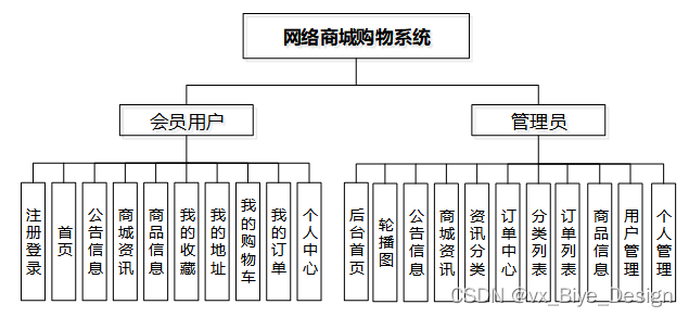 (1)功能要求:首页、公共管理(公告信息,轮播图)信息管理(商城资讯、资讯分类),订单信息、帮助反馈、运营计划、订单列表、分类列表、商品信息、个人资料等功能模块。
