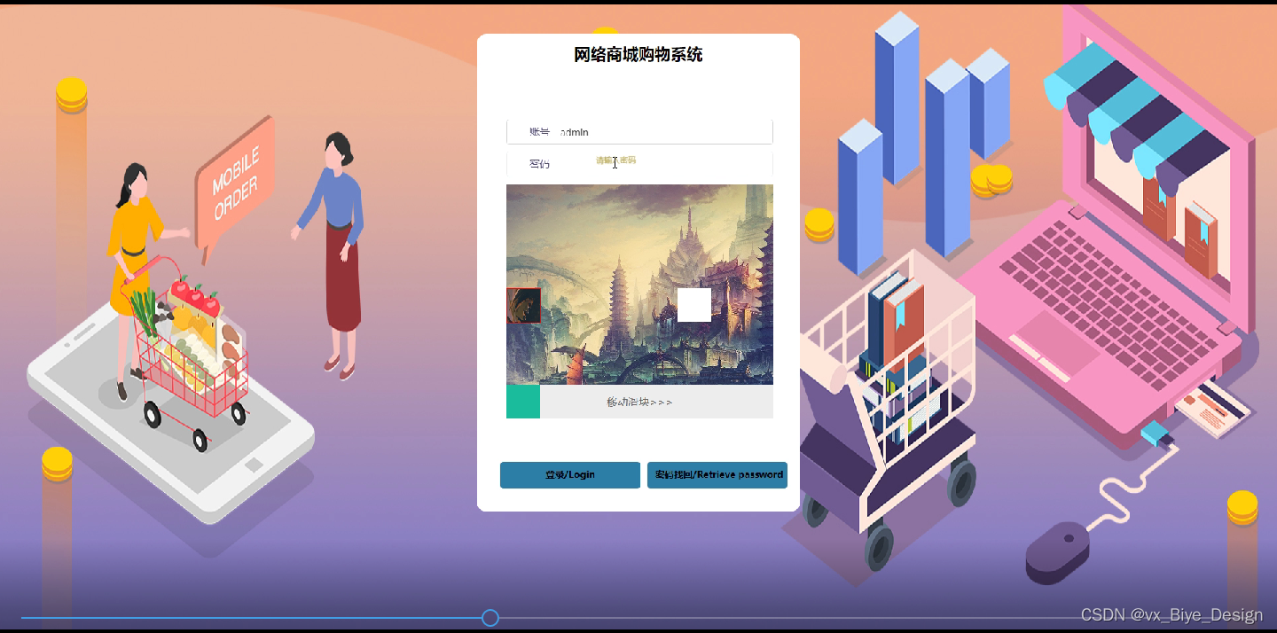 管理员登录网络商城购物系统,在登录页面输入用户名、密码进行登录,如图5-1所示。