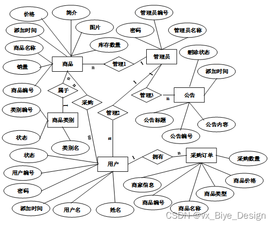 经过数据库的物理设计后,得到如下几个概念模型,它们的ER图如下所示。