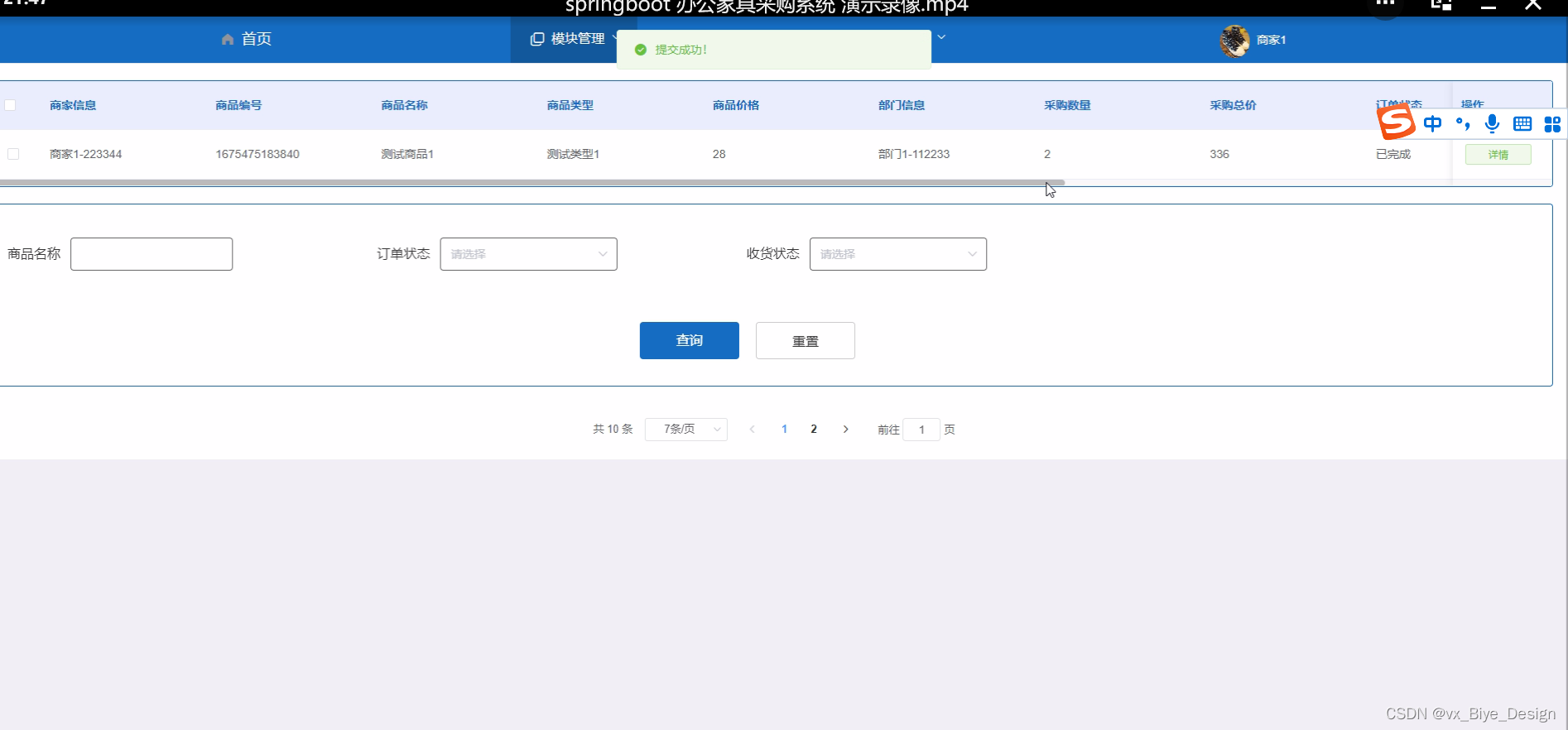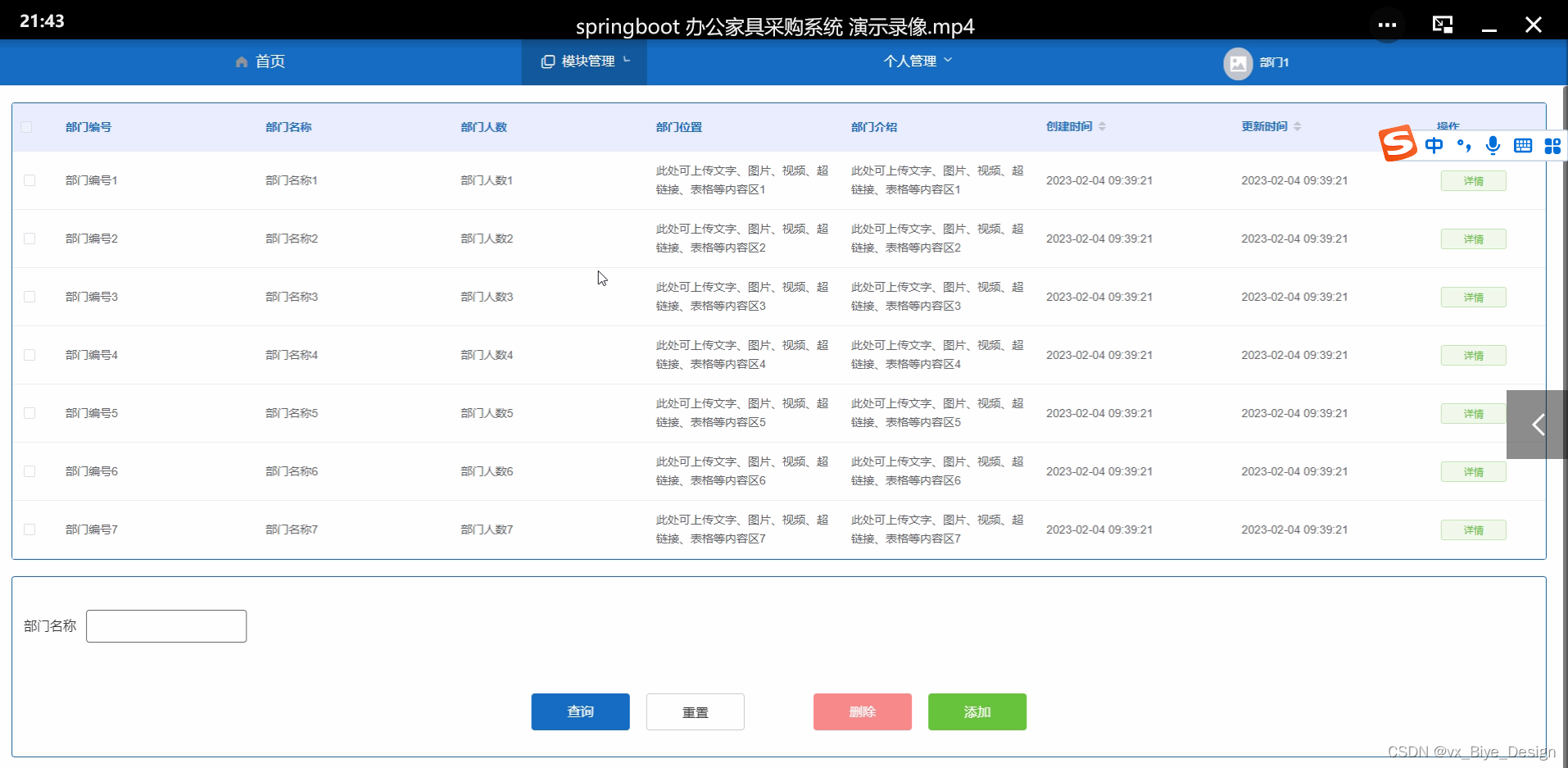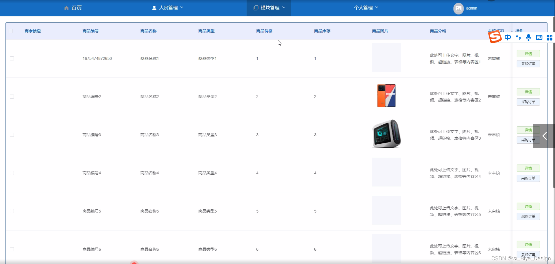 2. 系统功能还不够完善,无法提供丰富多彩的在线功能,只能实现通知公告、商品信息、类型管理、采购订单、采购记录、部门信息等一系列功能。