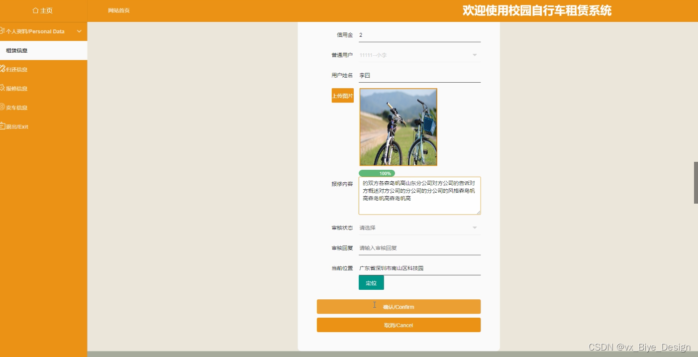 校园自行车租赁系统的完成,如何实现的更好,其中付出的努力是很大的,这段时光将会终身难忘。