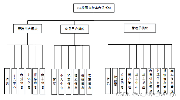 (1)功能要求:首页、个人资料、公共管理(轮播图、公告信息)用户管理(管理员、普通用户、会员用户)单车中心、单车类型、租赁信息(会员)、归还信息(会员)、报修信息(会员)、租赁信息、归还信息、报修信息、卖车信息、卖车信息(会员)等功能模块。